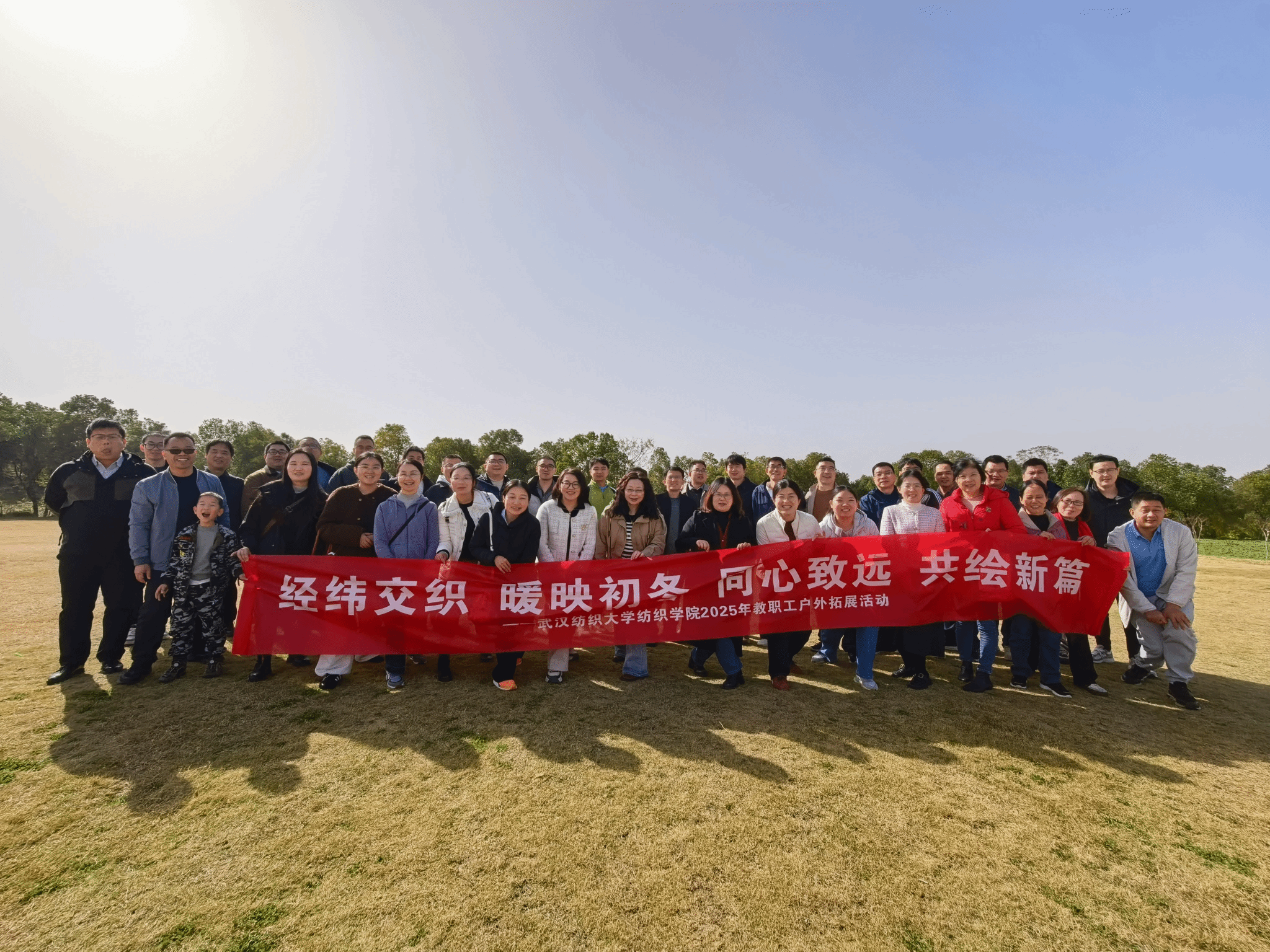 初冬暖阳沐初心,凝心聚力启新程。为丰富教职工文化生活,缓解教学科研压力,强化团队凝聚力与向心力,best365英国体育在线于11月27日组织全体教职工赴梁湖农庄开展户外拓展活动,以活力满满的互动体验搭建交流桥梁,在自然惬意的氛围中凝聚奋进力量,践行“崇真尚美,笃行致远”校训精神。合影梁湖农庄三面环山、一面临湖,湖光山色相映成趣,清新雅致的生态环境让教职工们暂别案头忙碌,沉浸式感受自然野趣。活动以“经纬交织凝合力,同心致远共前行”...