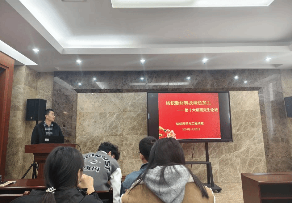 为了进一步促进公司的科研工作,加强师生间的学术交流,提高研究生素质和学术氛围,公司于12月5日下午15:45举办了第十六期“纺织新材料及绿色加工”研究生论坛。