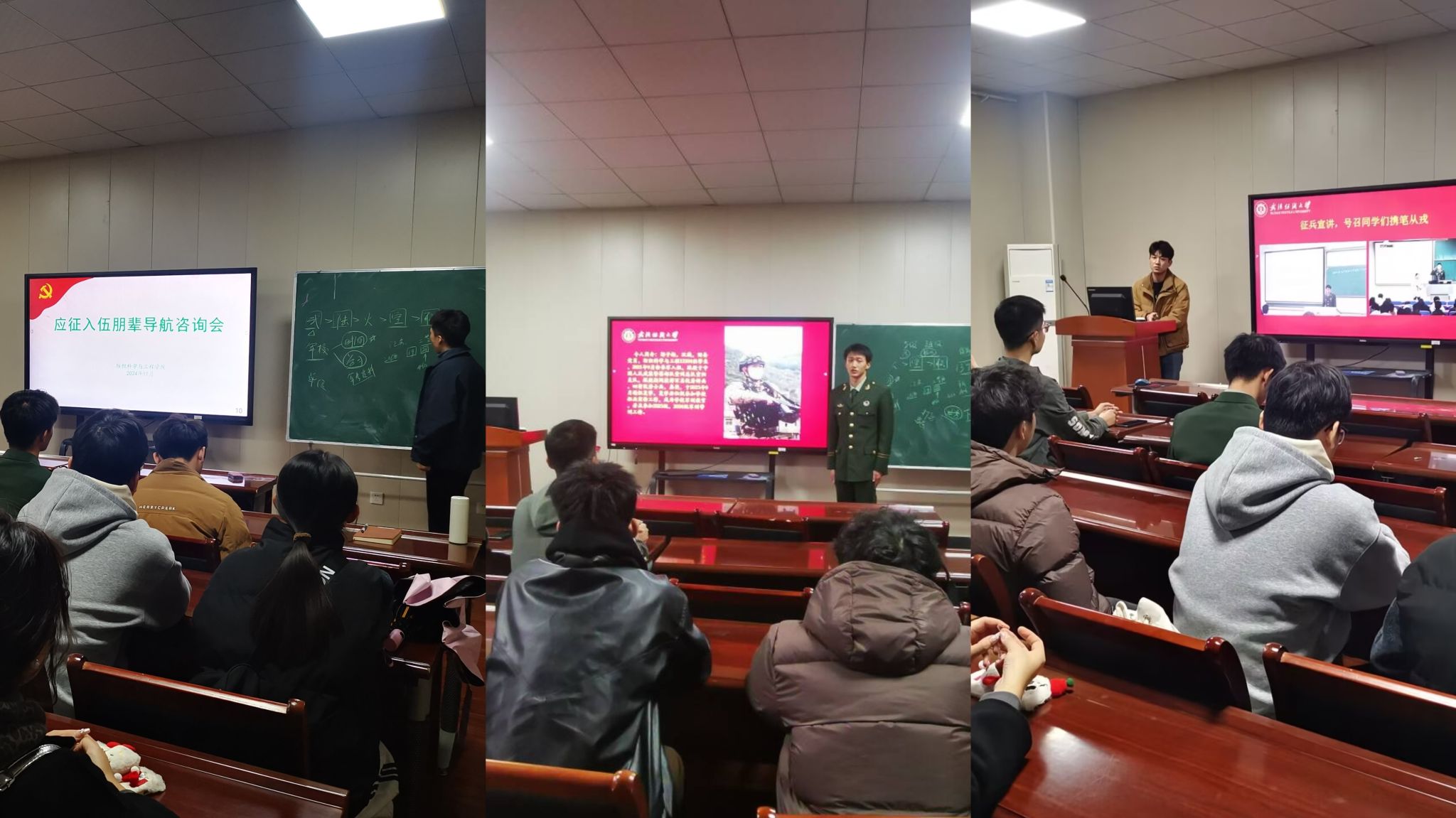 为进一步增强公司老员工国防意识,激发同学们参军入伍投身国防的热情,best365英国体育在线近期开展了征兵宣讲、征兵入伍朋辈导航咨询交流会、退役老员工座谈会等活动。员工工作负责人赵亮、征兵联络员梁祥云、各年级辅导员及全部本科生和部分研究生参加了相关活动。