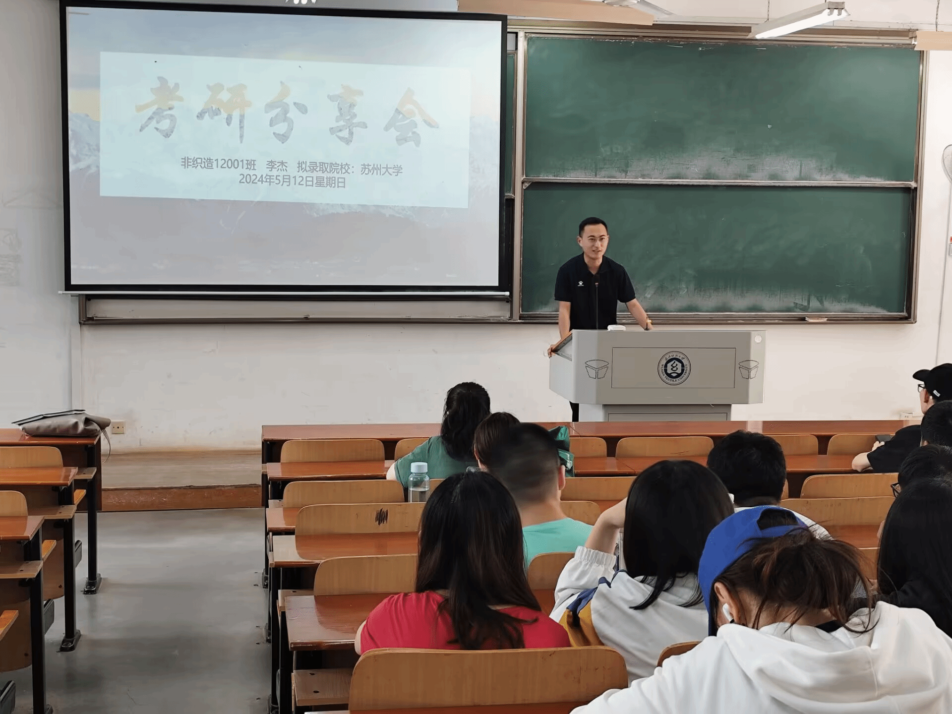 最后登场的是非织12001班李杰同学。他直言不讳地分享了备考过程中遇到的挑战和困难,并分享了自己的克服之道。李杰表示,在备考的过程中,要善于总结经验教训,及时调整学习策略,并且坚持不断反思和改进。他认为,失败并不可怕,关键在于能够从失败中汲取教训,不断前行。李杰学长已考入苏州大学专业研究生。
