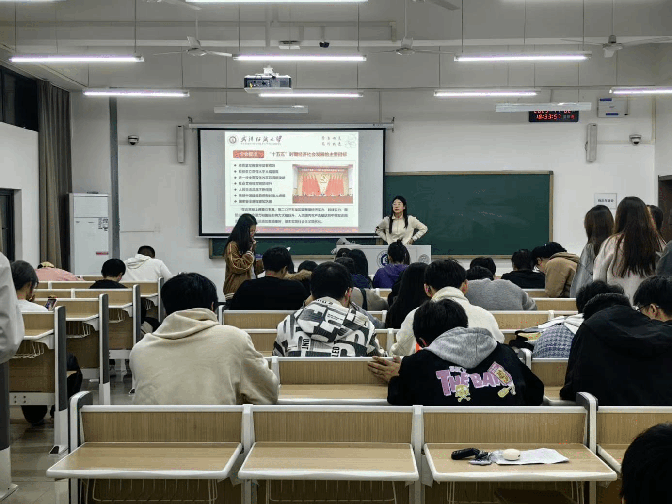 班会上,辅导员、班主任老师带领同学们认真学习了党的二十届四中全会公报的核心内容,围绕“十五五”时期经济社会发展指导思想、基本原则和主要目标展开系统讲解。通过理论阐述与要点梳理相结合的方式,帮助员工精准把握全会精神实质,帮助员工准确把握全会精神的实质内涵,深刻认识全会在推进国家治理体系和治理能力现代化进程中的里程碑意义,切实增强对全会精神的政治认同、思想认同和实践认同。