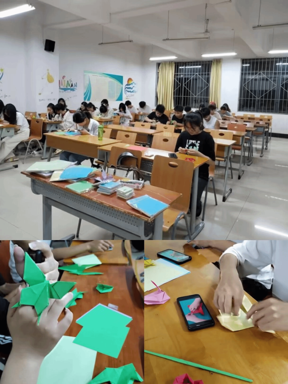 同学们将折纸当作桥梁,寄托自己的心愿和理想,以此帮助员工接近自己的目标,提升同学们的自制能力,疏解心理压力,增强自信心。