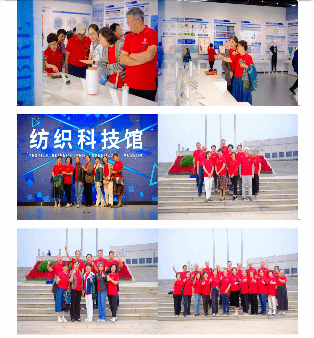 座谈会后,员工们在师生陪同下参观了纺织科技馆漫步校园,在教学楼、图书馆、运动场前合影留念,进一步感受母校的发展变迁。