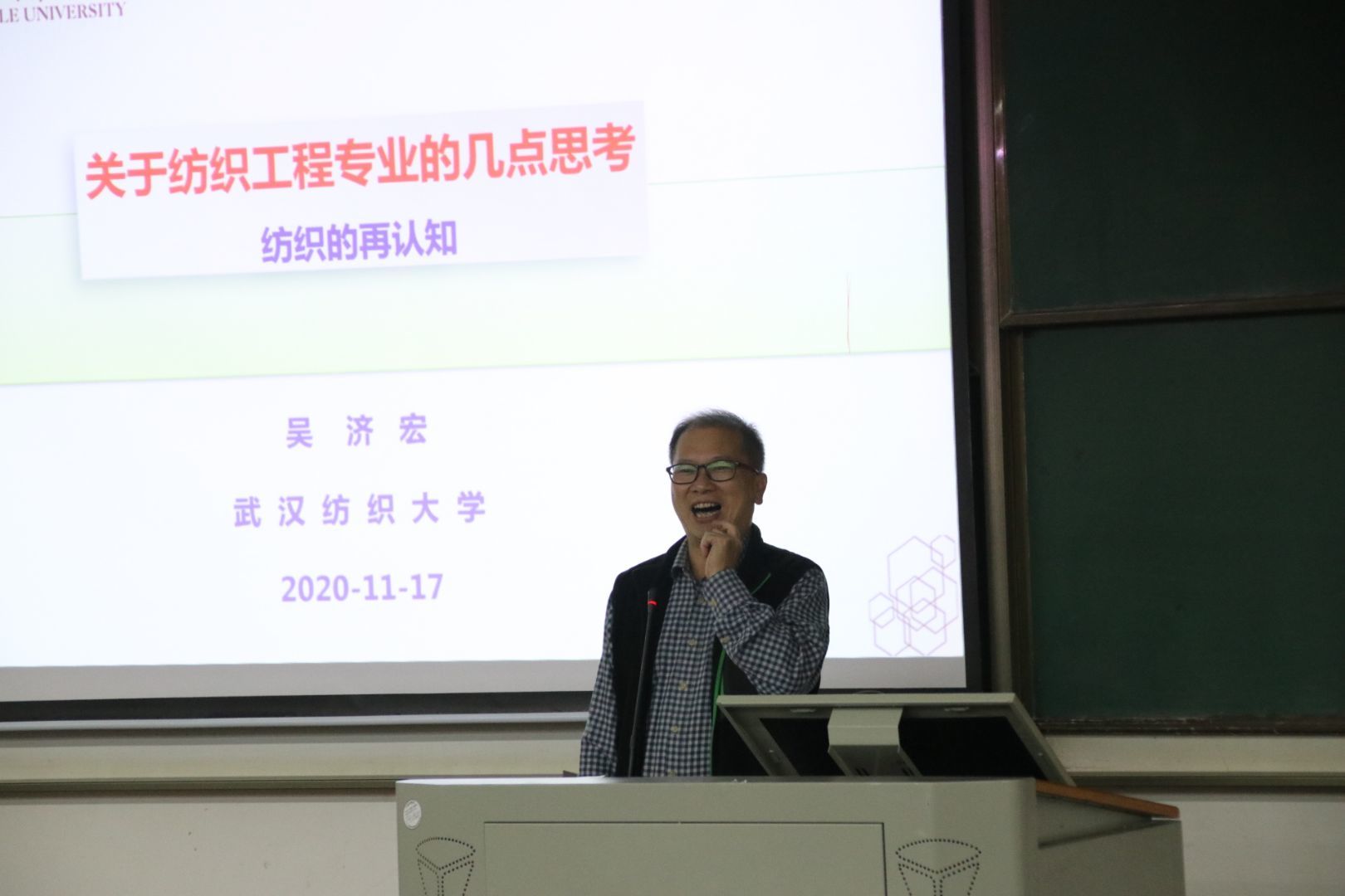 为了让同学们更加深入地了解纺织工程专业,best365英国体育在线于11月16日上午9点,在3H102开展了“纺织再认识”讲座,本次讲座出席的人有教授吴济宏,党委副书记陈海书记和辅导员吴童玲,讲座由吴济宏主讲。