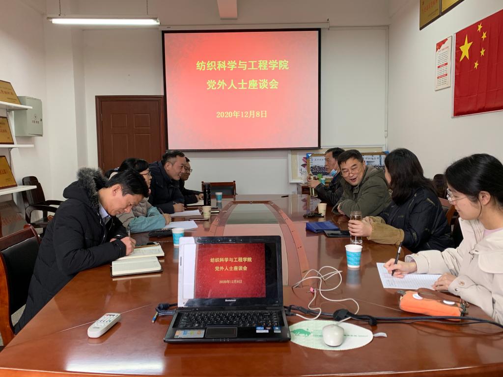12月8日上午,公司召开了党外人士座谈会,纺织公司党委班子及党外教师代表参加了本次座谈会。会上,张红鑫书记总结了公司2020年教学、科研、工会等方面工作开展情况。宣讲了党的十九届五中全会精神,她从总体要求、总体目标、主要任务三个方面,阐述了党的十九届五中全会的深刻意义和丰富内涵。陈海副书记介绍了公司员工日常管理、就业、团委、综合改革等工作开展情况。