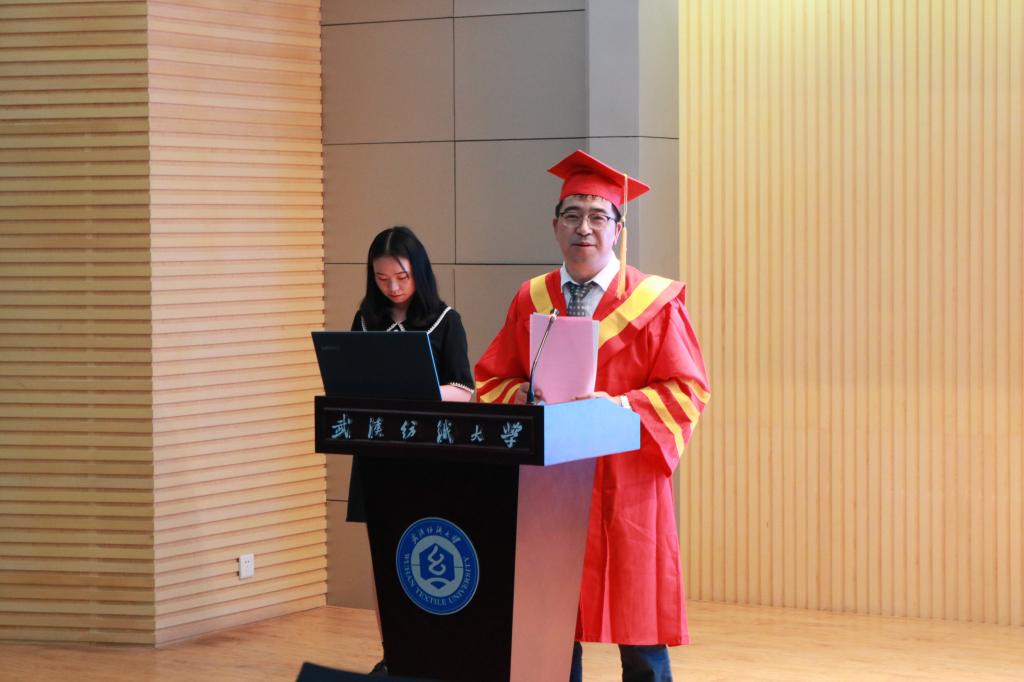 best365英国体育在线2019届本科生学位授予仪式开始。本次学位授予仪式由蔡光明教授主持,纺织工程系系主任曹新旺老师为2019届毕业生颁发学位证书,张尚勇经理为学士学位获得者拨穗,正冠。