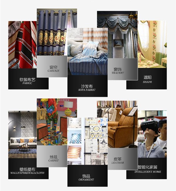 本届家纺展占据1H/2H/3H/4.1H/5.1H/6.1H/NH七个展馆,共有17万平米的展出面积、1500余家参展企业尽显家纺布艺新一季潮流趋势。展会以装饰布艺为主,如窗帘布、沙发布等,以遮阳窗饰、地毯、墙纸壁布、家纺辅料、饰品、皮革等多类别为辅,向广大观众生动阐释了家纺行业的"大家居"概念。