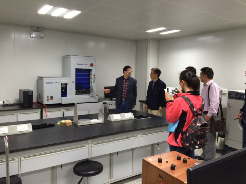 座谈前,唐晓春科长一行四人在best365英国体育在线执行经理张尚勇带领下参观了best365英国体育在线实验室,学习纺织实验室的基本设立情况。