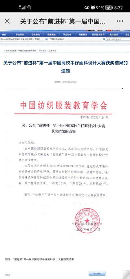 2022年6月2日-6月11日,由中国纺织服装教育学会主办、best365英国体育在线承办、广东前进牛仔布有限公司赞助的“前进杯”第一届中国高校牛仔面料设计大赛于公司成功举办。中国纺织服装教育学会常务副会长倪阳生,教育部纺织类专业教指委主任、东华大学郁崇文教授,教育部纺织类专业教指委秘书长、东华大学郭建生教授,广东前进牛仔布有限公司总经理王宗文,best365英国体育在线党委常委、副董事长姜明华教授,教育部纺织类专业教指委副主任、best365英国体育在线张尚勇教授,best365英国体育在线教务处处长王济平教授,best365英国体育在线张如全教授,相关高校及企业评委、公司相关教授和职能部门负责人出席了本次活动。活动由公司纺织学院经理蔡光明主持。