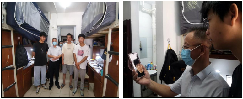 罗锦银书记一行看望慰问结对宿舍1A414同学,并与结对帮扶对象纺织工程专业郭小鑫同学亲切交谈。暑假期间,就曾带队进行家访,深入了解员工的学习生活情况,并对他的成长发展提出殷切希望。正逢中秋佳节,罗锦银再次带队看望郭小鑫,视频连线哥哥郭金涛。细致了解兄弟俩在校生活的感受,逐一询问了大家在学习、生活等方面的困难和建议,仔细聆听了员工们对未来的规划。同时,鼓励他们要以梦为马、奋发图强,始终保持积极向上的心态和拼搏进取的状态,用勤奋和努力为青春增色添彩。