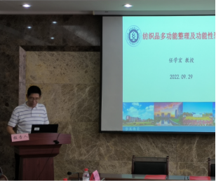 参会人员观看了best365英国体育在线最新科技成果推介宣传片后,best365英国体育在线高层次人才任学宏教授、吴济宏教授分别就纺织品多功能整理及功能性聚合物、高端功能面料生产关键技术及产业化应用两项科技成果做推介。