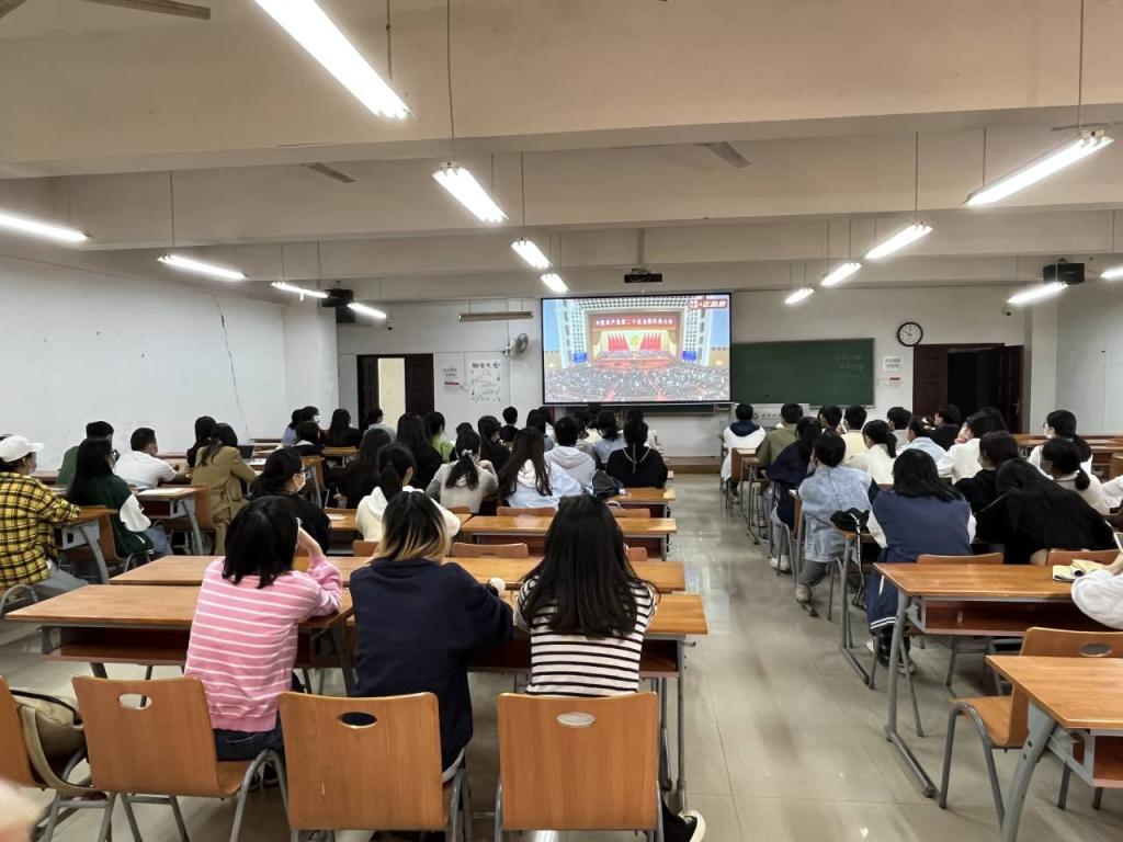 在主题班会现场,全体辅导员、班主任老师向同学们讲解二十大的内涵,与全体同学开展了热烈的学习讨论,号召全体同学巧抓机遇,在施展才干的时代大舞台上实现光明梦想,继续坚定不移听党话、跟党走,怀抱梦想又脚踏实地,敢想敢为又善作善成,立志做有理想、敢担当、能吃苦、肯奋斗的新时代好青年,让青春在全面建设社会主义现代化国家的火热实践中绽放绚丽之花。