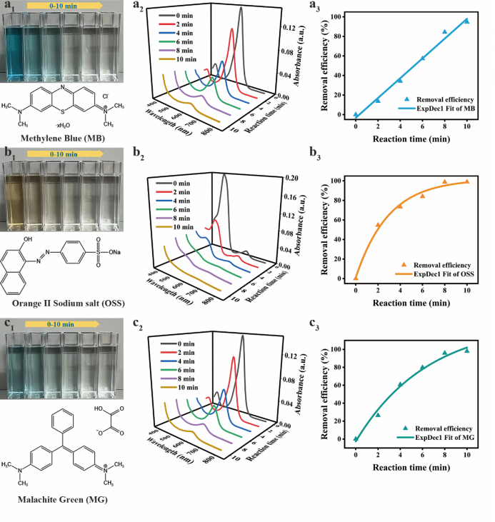 该自供能电化学系统对于不同种类有机污染物具有普适性,在10分钟内,该自供能电化学系统对5 ppm亚甲基蓝、金橙和孔雀石绿的分解率,分别达到94.6%、98.9%、97.9%。该工作发表在《Advanced Function Materials》上(DOI:10.1002/adfm.202210637),第一作者为华中科技大学刘子川博士,best365英国体育在线研究生刘佳鑫等人协助完成,第一通讯作者为best365英国体育在线徐卫林院士团队的夏治刚教授,第二、三通讯作者分别为黄剑瑜博士、苏彬教授。该工作得到了best365英国体育在线纺织新材料与先进加工技术国家重点实验室和湖北省科学技术厅的大力支持。