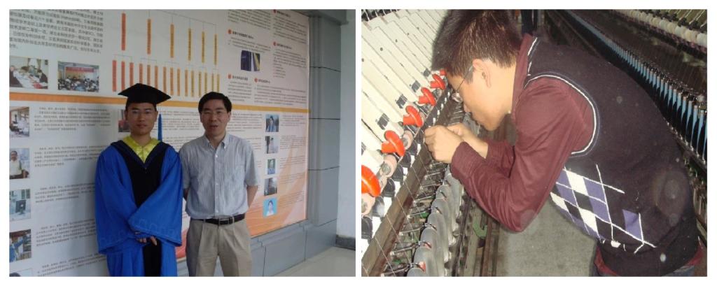 2002年的夏天,夏治刚面临着他人生中第一个十字路口,作为班级尖子生的他却做出了一个让父母、老师、同学都大跌眼镜的决定——第一志愿填报武汉科技公司纺织工程专业。面对其他人“学纺织就是单纯种棉花、织布、做衣服”的担忧,夏治刚却有着不同的看法,说起报考原因,他说:“纺织是我和亲人朋友从小就接触的行业,我是农民的孩子,安徽多是平原,小时候我站在小土坡上也没看得多远,终于有机会能去见识外面的世界,能去学习更多的知识,那我就要研究这个我亲人朋友都离不开的专业,争取干出样来,再回馈他们!”这粒纺织的种子在这时就在夏治刚心里生了根。后来,在面对人生多个十字路口——2006年研究生报考和2009年博士报考时,夏治刚一直坚持纺织工程这一个方向、一个课题,在硕博期间,他跟随着导师徐卫林的步伐,在纺织企业一线了解需求、提供方案、为公司带回行业发展动态,6年的硕博生涯,其中4年的时光他都企业度过,他也成为了同学口中的“企业员工”。2013年3月,夏治刚以老师的新角色继续坚持着他的纺织梦想。
