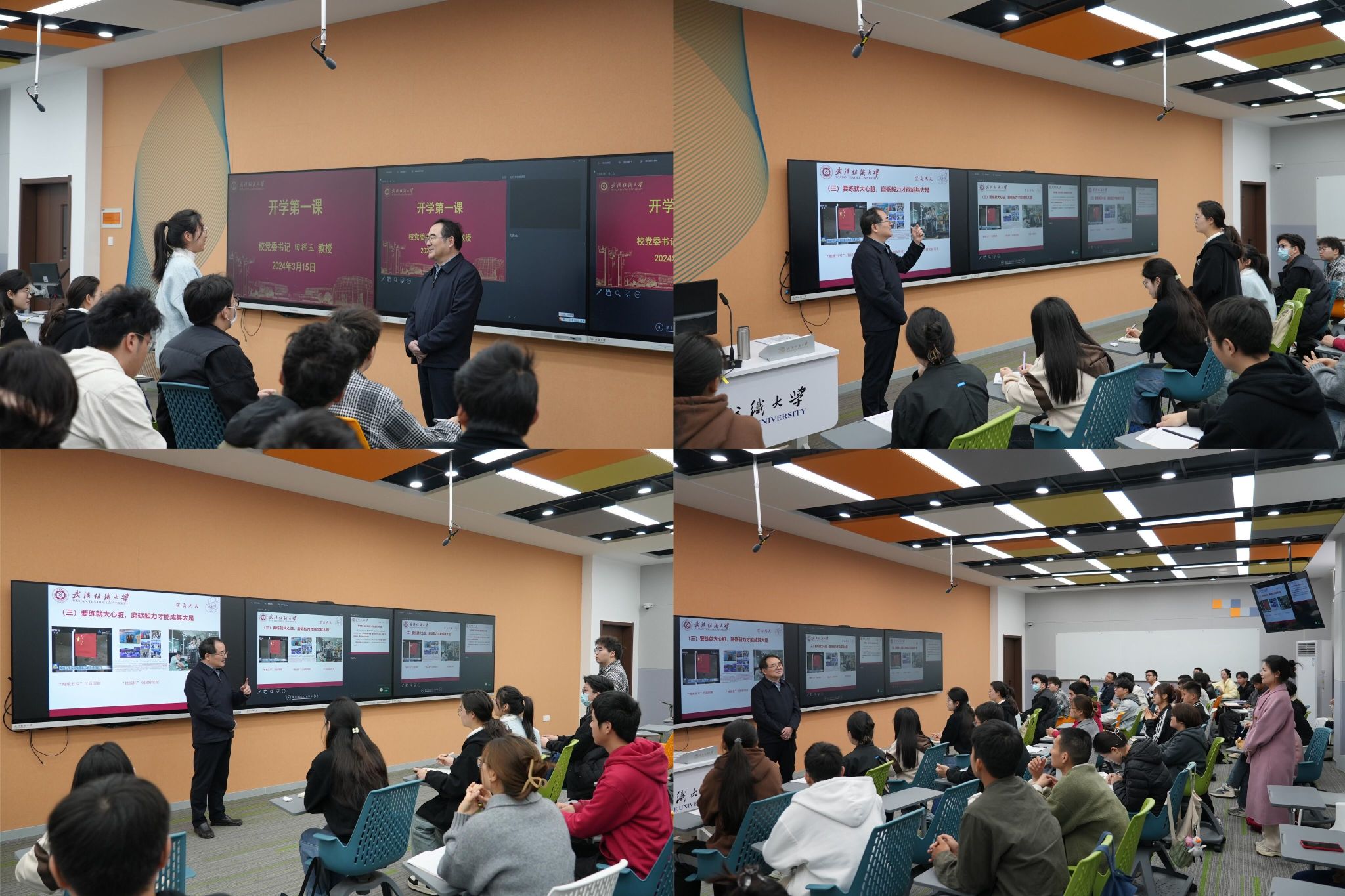 他深刻分析湖北经济发展布局,指出加快建设成为全国构建新发展格局先行区的定位,是湖北心怀“国之大者”、走好新的赶考之路的现实需要;加快建设具有全国影响力的科技创新中心,是坚持把创新驱动作为城市发展主导战略的必经之路。他生动讲解“美好纺大”的五大内涵、发展战略和建设成效,寄语同学们要立下鸿鹄志、志存高远才能登高望远,要学得真本事、脚踏实地才能搏击青春,要练就大心脏、磨砺毅力才能成其大事。
