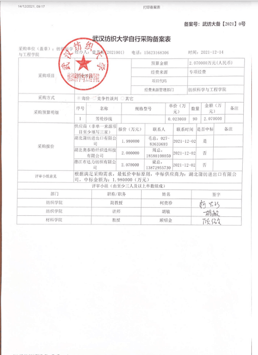 关于芳纶纱线的公示