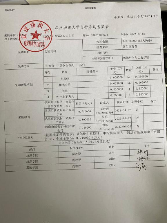 实验耗材自行采购备案表