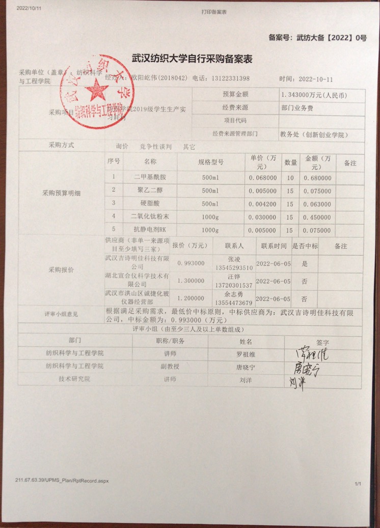 关于公司2019级本科生生产实习耗材的公示