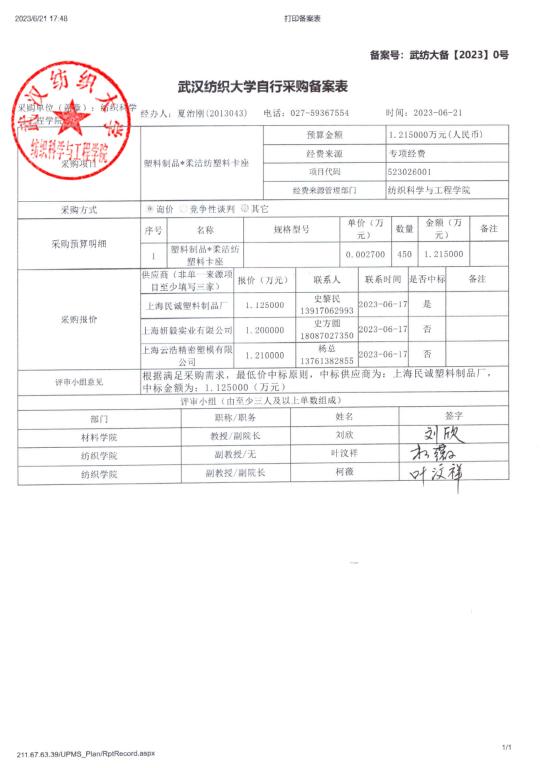 塑料制品*柔洁纺塑料卡座采购公示