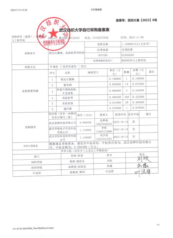 关于氧化石墨烯、高温胶带等耗材的公示