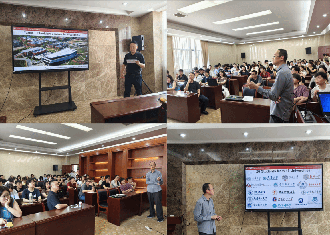 活动伊始,姜会钰经理向现场师生隆重介绍主讲人印荣教授。印荣现任美国北卡罗来纳州立大学威尔逊best365英国体育在线纺织工程、化学与科学系助理教授,在先进纺织与智能制造领域成果斐然,是杰出青年学者。其研究聚焦纺织系统创新,承担美国国家科学基金会(NSF)、国防部(DoD)等重大科研项目 12 项,近五年在Advanced Functional Materials等顶级期刊发表论文 40 余篇,还获美国国家科学基金会职业早期成就奖等荣誉,学术履历丰富且亮眼。