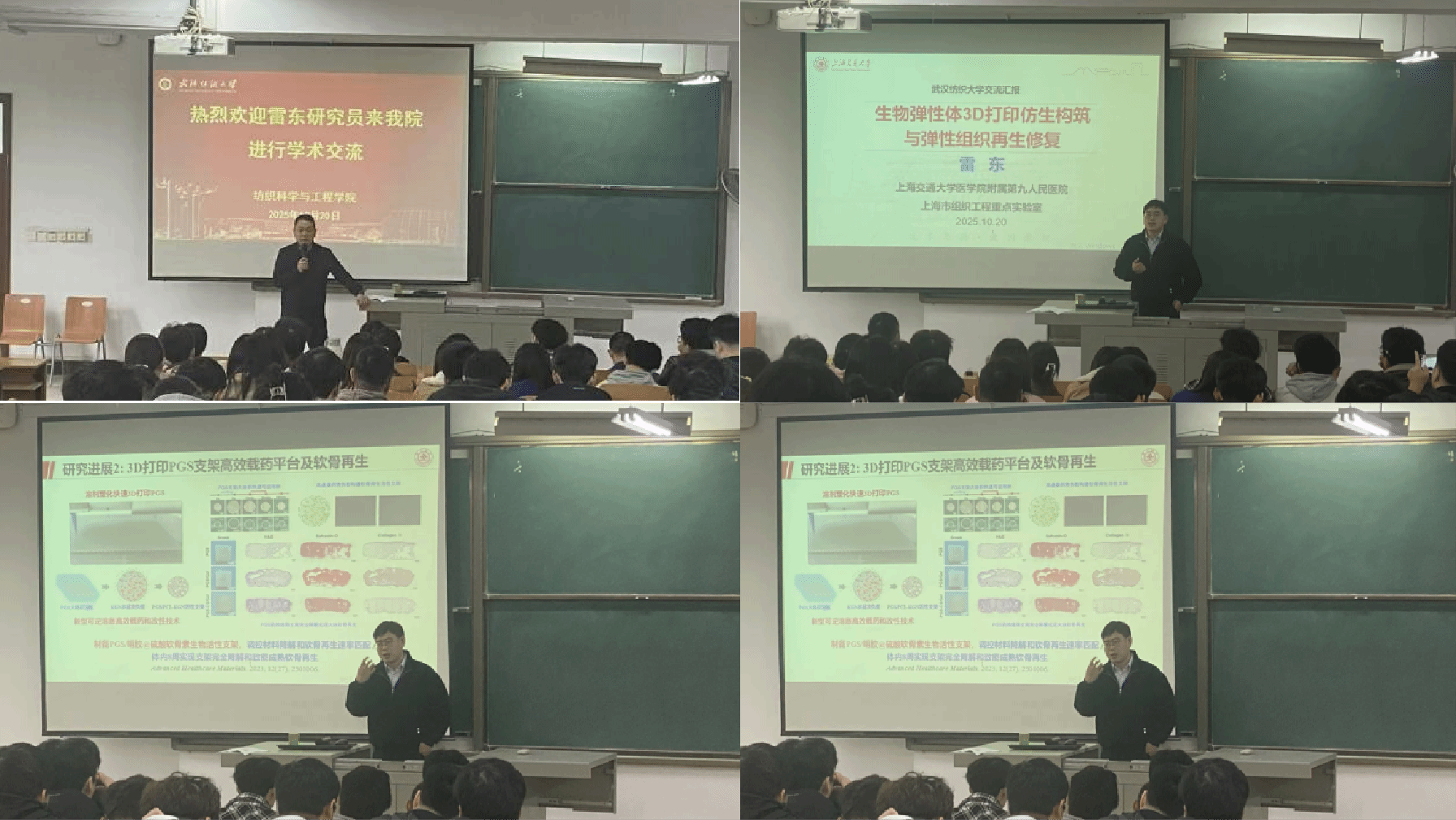 姜会钰教授首先介绍了雷东研究员的科研、工作经历,并对雷东研究员的出席表示了热烈欢迎。讲座中,雷东研究员以“3D打印生物弹性体仿生构筑与组织再生修复”为题,介绍了该课题的研究背景,并分享了他在组织工程与再生医学领域的研究进展,包括3D打印仿生血管网络、PGS生物弹性体3D打印技术、干细胞协同仿生脊髓支架等在医学中的应用,并对未来进行展望。交流中,雷东研究员和参会的青年教师就生物弹性体3D打印等问题进行了热烈的交流,为师生们答疑解惑,并为公司青年教师基金申报工作进行了指导和辅导,并祝公司在2026年基金申报工作中一帆风顺、满载而归。参会师生表示讲座内容干货满满、收获满满。最后,参会师生对雷东研究员表示了诚挚感谢。