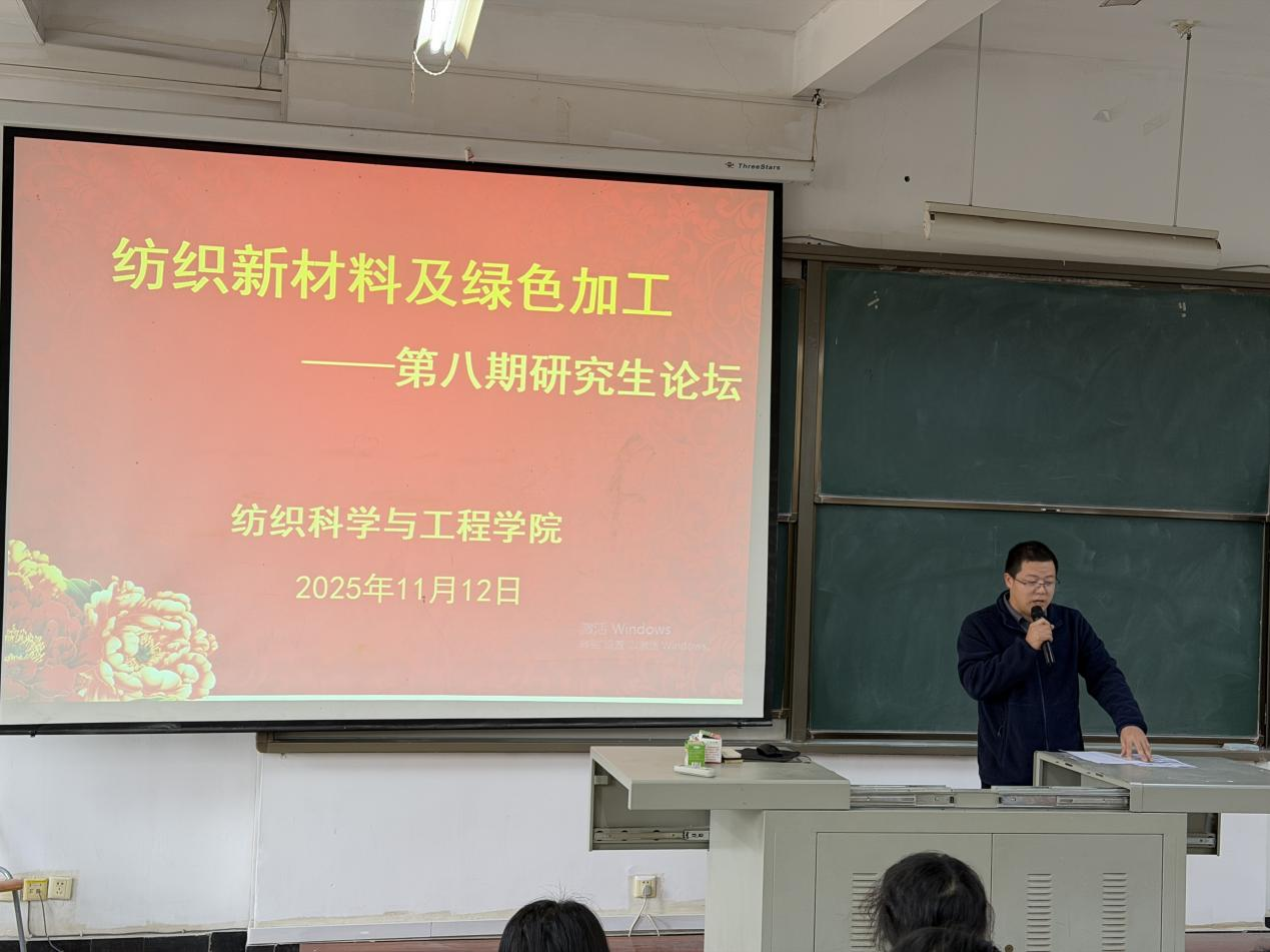 首先,罗祖维老师介绍了举办研究生论坛的主旨和意义,同时宣布第八期“纺织新材料及绿色加工”研究生论坛正式开始。