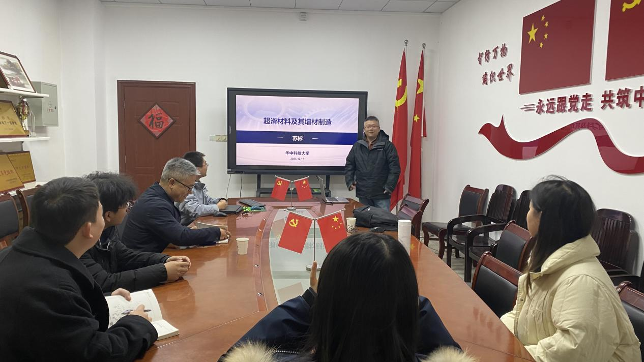 夏治刚首先介绍了苏彬教授的科研、工作经历,并对苏彬教授的出席表示了热烈欢迎。讲座中,苏彬教授以“超滑材料及其增材制造”为题,介绍了该课题的研究背景,并分享了他在采用多粉材激光增材制造方法制造超滑材料的研究进展,并对未来进行展望。交流中,苏彬教授和参会的青年教师就激光增材制造方法等问题进行了热烈的交流,为师生们答疑解惑,并为公司青年教师基金申报工作进行了指导和辅导,并祝公司在2026年基金申报工作中一帆风顺、满载而归。参会教生表示讲座内容干货满满、收获满满。最后,参会师生对苏彬教授表示了诚挚感谢。