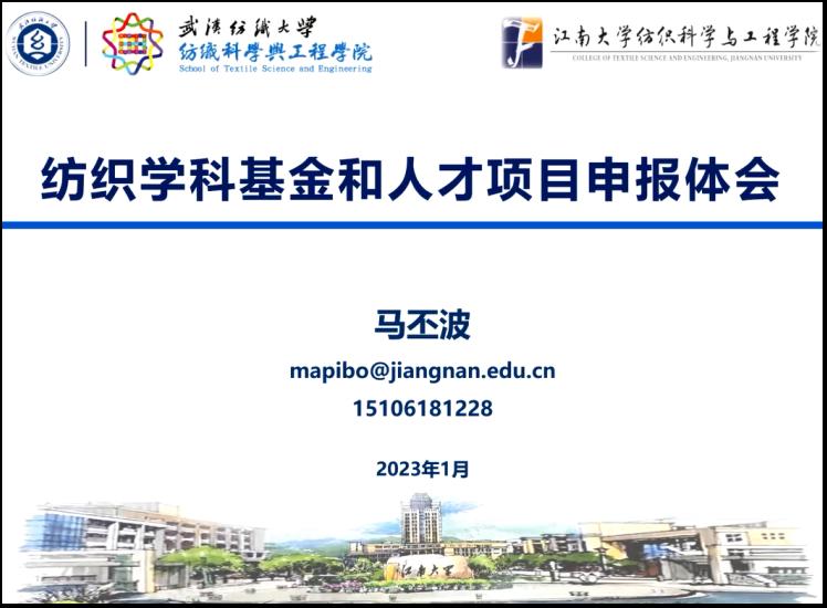 夏治刚首先介绍了马教授的科研、工作经历,并对马教授的出席表示了热烈欢迎。讲座中,马教授以“纺织学科基金与人才项目申报体会”为题,介绍了他对国家自然科学基金申报的经验和思考。他从纺织学科基金项目申报体会、纺织学科人才项目申报体会两方面分享了他本人在国家自然科学基金及人才项目申报经验和思考,并为公司教师青年教师成长发展进行了指导和辅导,并祝best365英国体育在线在2023基金申报工作中一帆风顺、满载而归。交流中,马教授和参会的青年教师就基金申报的细节问题进行了热烈的交流,为青年教师答疑解惑,参会教师表示讲座内容干货满满、收获满满。最后,参会师生对马教授表示了诚挚感谢。