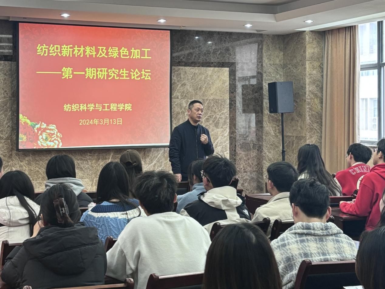 首先,姜经理介绍了举办研究生论坛的主旨和意义,以及今年研究生论坛开展安排。同时宣布第一期“纺织新材料及绿色加工”研究生论坛开始。