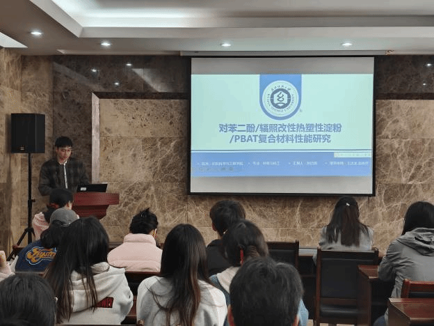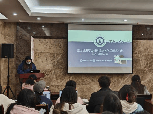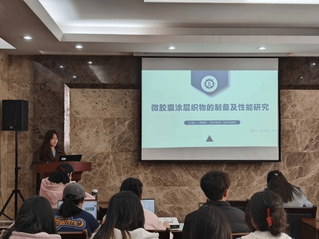 论坛上,孙治国、史纳蔓、梁雁、潘钰、龚婉琴、王家轩和郑冰倩七位同学依次介绍了自己的研究课题和目前取得的研究进展,并分享了自己的科研经验。主讲同学的研究课题包括热塑性淀粉/PBAT复合材料、液态金属基纤维复合材料、真丝织物与植物染料喷墨印花、SnO2中空纤维负载纳米金属、微胶囊涂层织物、三维机织复合材料、UHMWPE纤维层合板,契合了“纺织新材料及绿色加工”主题,代表了公司最新研究进展,参会人员积极提出问题和建议,营造了良好的学术氛围。