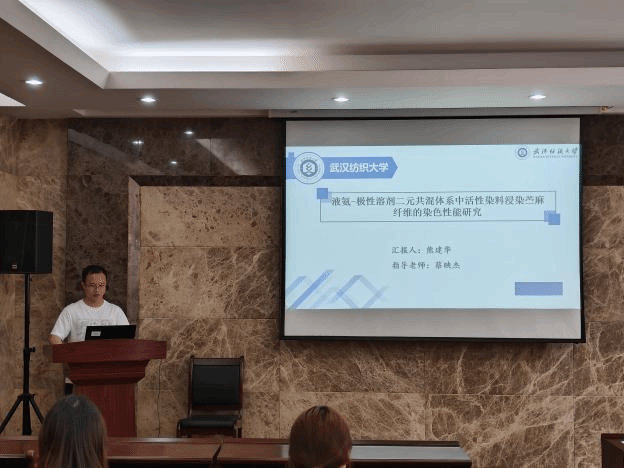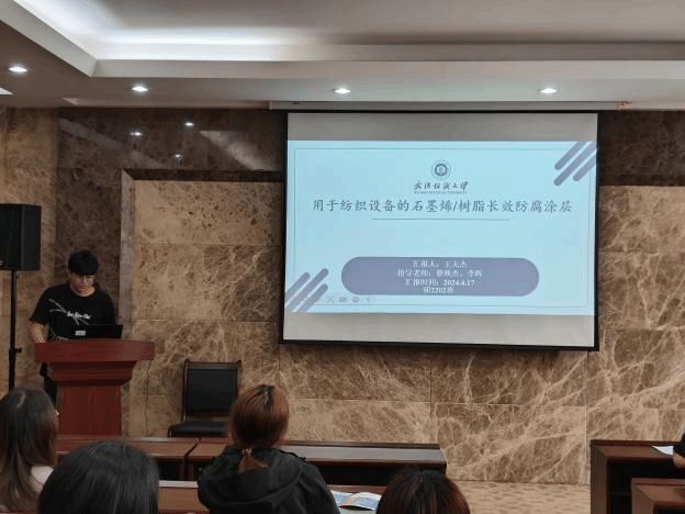 论坛上,王天杰、卜炎龙、柴英、孙静静、熊建华和姚依婷六位同学依次介绍了自己的研究课题和目前取得的研究进展,并分享了自己的科研经验。主讲同学的研究课题包括石墨烯/树脂、板栗壳色素、三维机织复合材料、丝素基神经导管、液氨-极性溶剂二元共混体系中活性染料、三维核壳结构蒸发器,契合了“纺织新材料及绿色加工”主题,代表了公司最新研究进展,参会人员积极提出问题和建议,营造了良好的学术氛围。