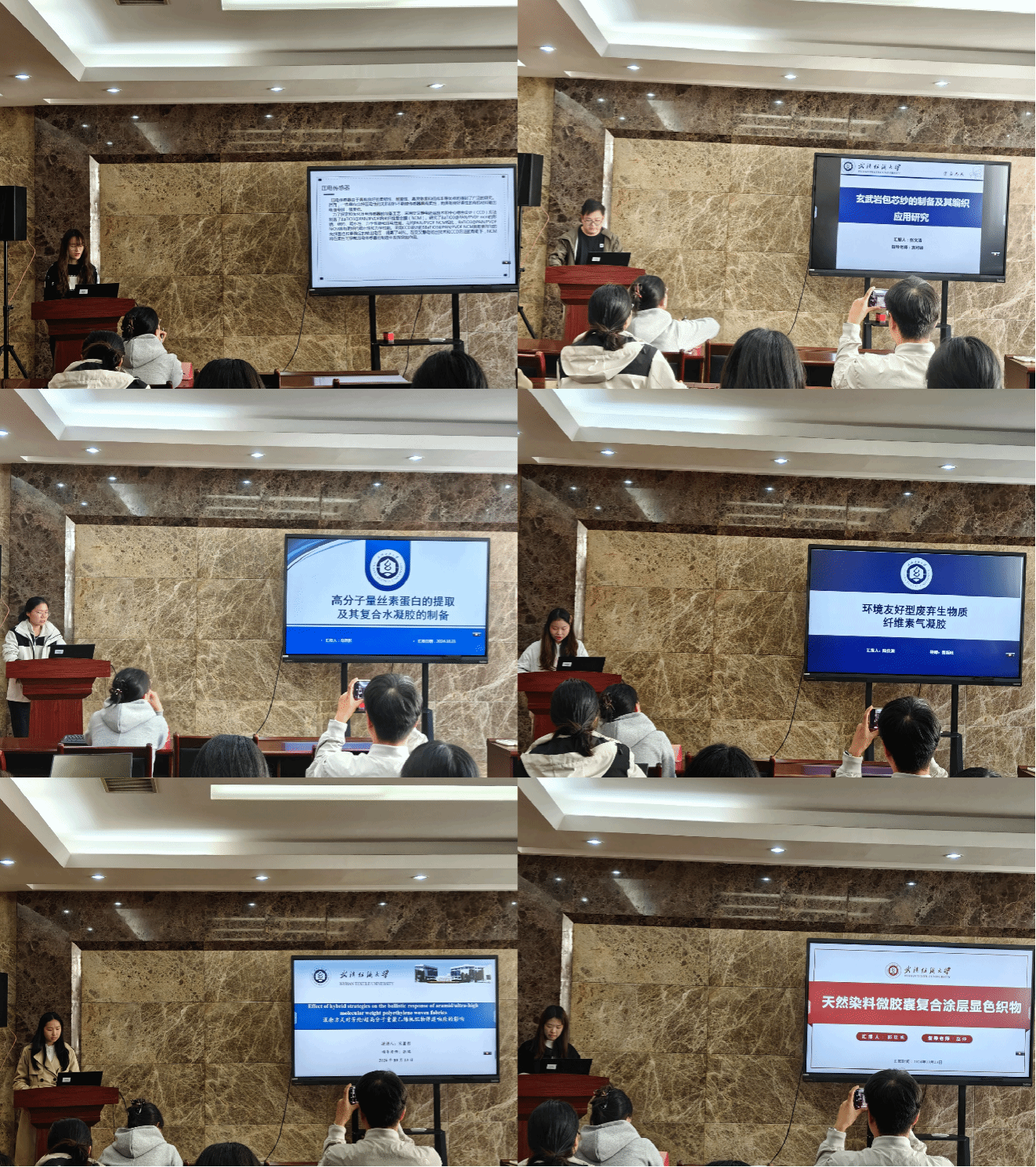 论坛上,张希凤、张文清、冯思影、陆佳润、宋萧彤、郭玫帆六位同学依次介绍了自己的研究课题和目前取得的研究进展,并分享了自己的科研经验。主讲同学的研究课题包括压电复合材料、玄武岩包芯纱、高分子量丝素蛋白、环境友好型废弃生物质纤维素气凝胶、芳纶/超高分子量聚乙烯机织物、天然染料复合涂层显色织物,契合了“纺织新材料及绿色加工”主题,代表了公司最新研究进展,参会人员积极提出问题和建议,营造了良好的学术氛围。