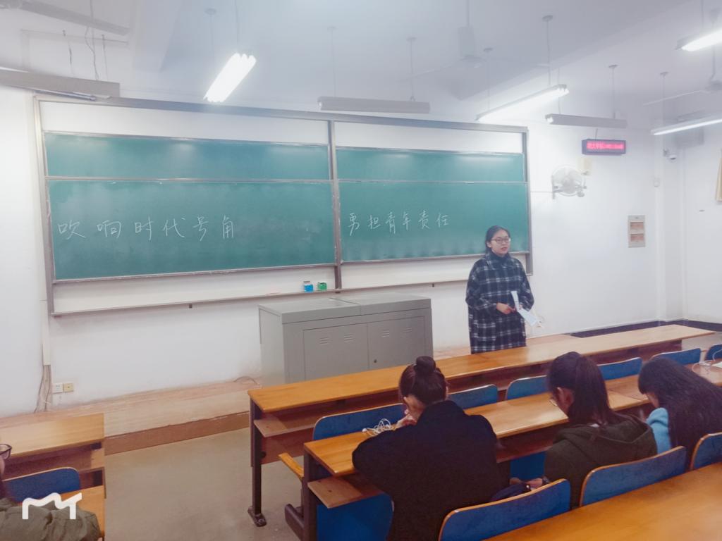 为了使同学们深入了解并承担自身的责任,提高同学们的责任和担当意识。best365英国体育在线于12月2日在03-116举行了以“吹响时代号角,勇担青年责任”为主题的团课,本次团课由团委员工会副书记陈莉主持,辅导员肖娟老师、员工会主席陈一肖主讲,大一全体新生参加本次团课。