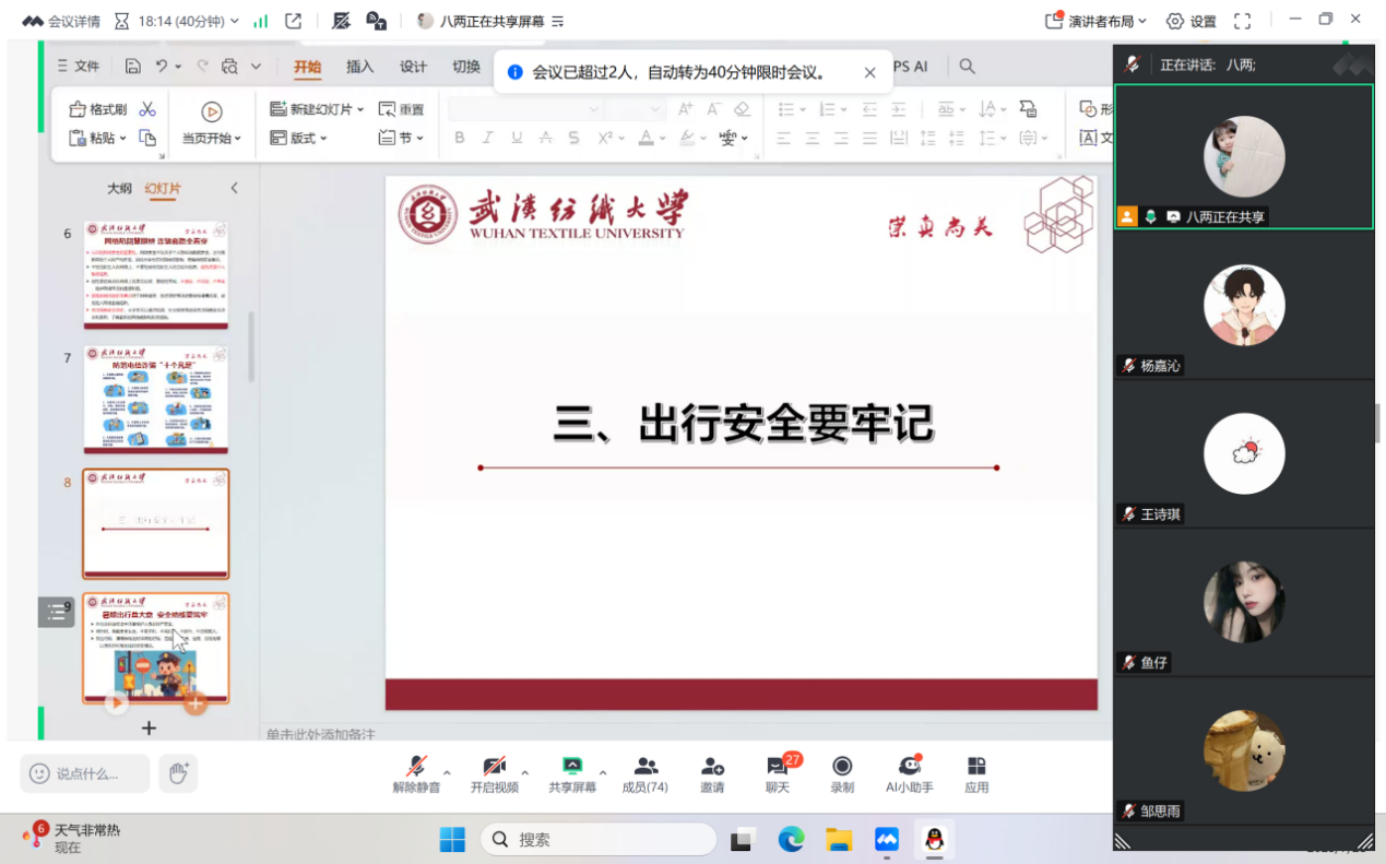 公司开展2025年秋季“平安假期,安全返校”线上主题班会