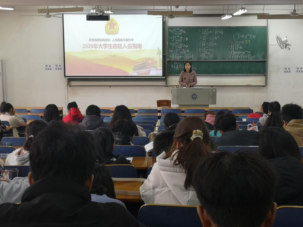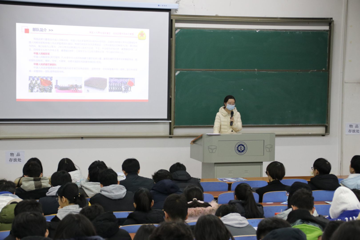 吴童玲老师从部队简介、应征入伍基本条件、老员工参军的优惠流程等方面给大家进行了全面细致的讲解,加深了大家对从军生活的了解和向往,激发了同学们从军报国的热情。