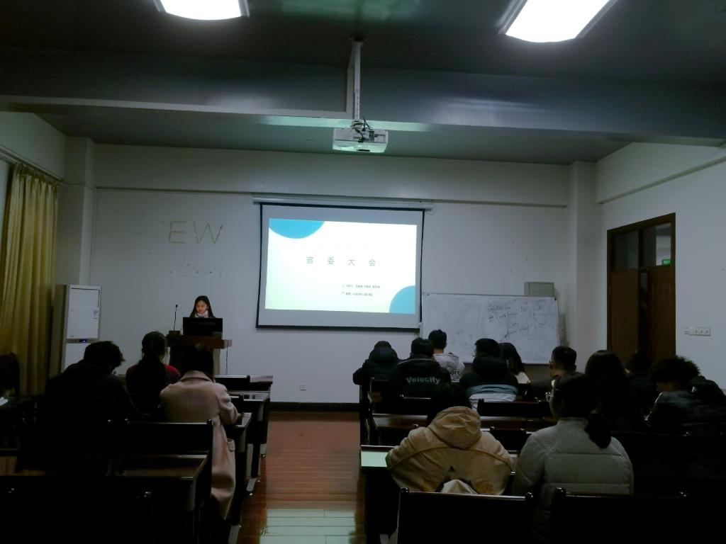 最后蒙珍婷发言,她对前面两位部长的讲话进行了简略总结,随后简要介绍了迎新晚会MV要求,希望各位宣委能够呼吁同学们将纺大美图发送至宣传部人员,将纺大最美的一面在纺院迎新晚会上展现出来。