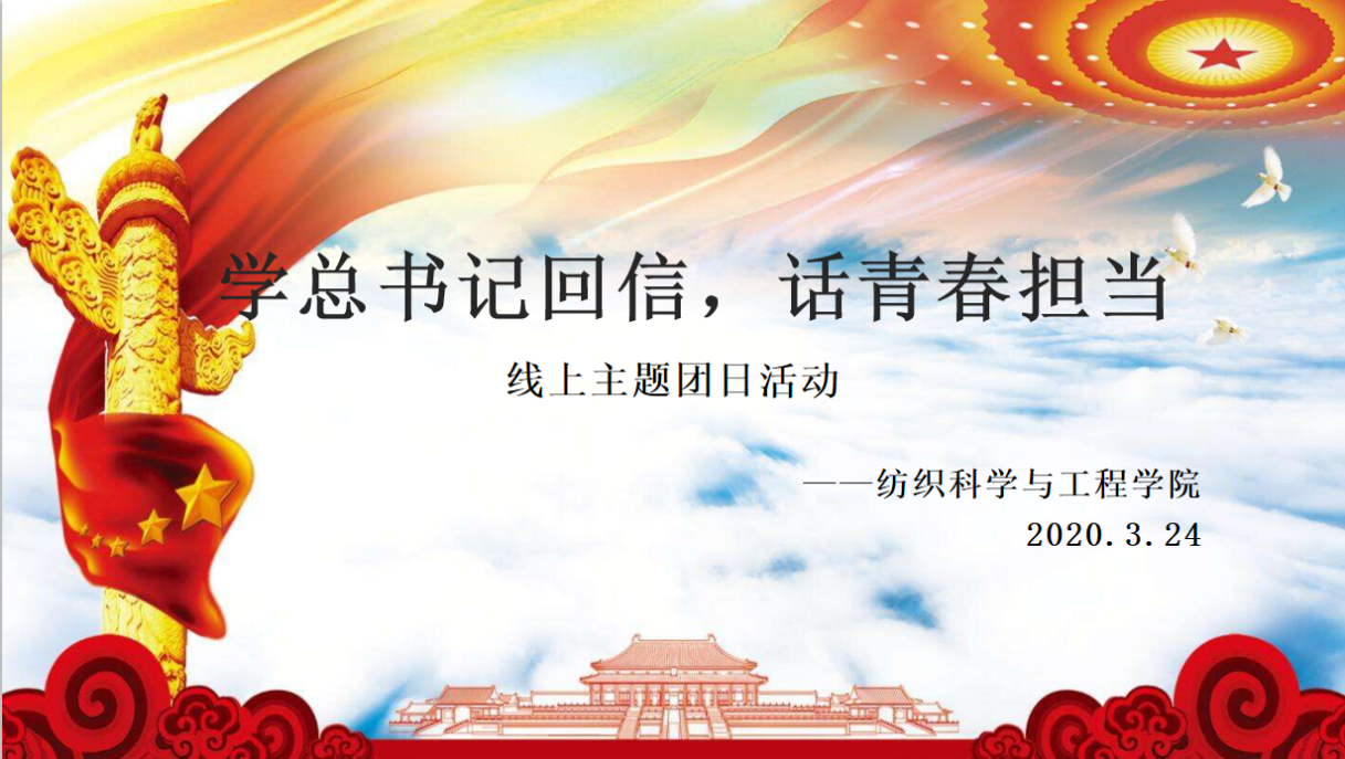 其中纺织工程11701班全体27名员工开展线上主题团日活动。活动中,团支书组织大家认真阅读了习近平总书记的回信,并且分享了抗疫期间的体现各行各业勇于担当、乐于奉献的暖心视频。在本次团日活动中,同学们上下一心,关注疫情信息,深入了解相关内容,带头做好自身防控,以正确乐观的心态面对疫情。