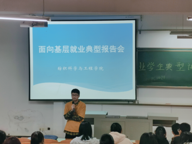 讲座开始,就业于杭州森马服饰有限公司的2017届员工潘辰以自身经历为例,介绍了一个专业骨干在社会上的地位,并针对学习之余个人的选择与自我状态调整,为同学们提出了建设性的意见,之后就就业地点和日后发展这两个现实问题做了详细的说明,并强调了要有善于和他人交流的习惯,同时介绍了英语在就业时的重要性以及本科生与研究生在就业时所具备的优势。最后,潘辰针对同学们的提问一一作答。