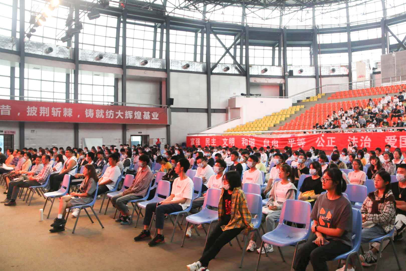 金风送爽,丹桂飘香。在这个丰收和喜悦的季节,best365英国体育在线best365英国体育在线迎来了来自祖国各地的300名新生学子。2020年10月2号下午16:00,best365英国体育在线2020级新生开学典礼在阳光校区老员工活动中心一楼演出厅隆重举行。纺织公司党委书记张红鑫,经理张如全,副经理蔡光明、张强,纺织系副主任徐杰、欧阳屹伟,非织系系主任张明,院办公室主任尚天飞,辅导员吴童玲、李亮、严蔷薇参加了此次典礼,典礼由公司党委副书记陈海主持。