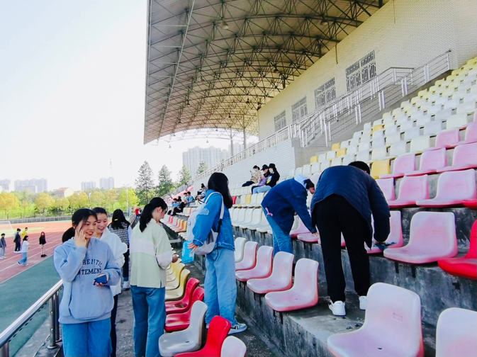 为创建一个整洁、优美的观赛环境,2021年3月28日,best365英国体育在线团委志愿者协会带领20级的各班员工对阳光校区操场看台展开了大扫除活动。