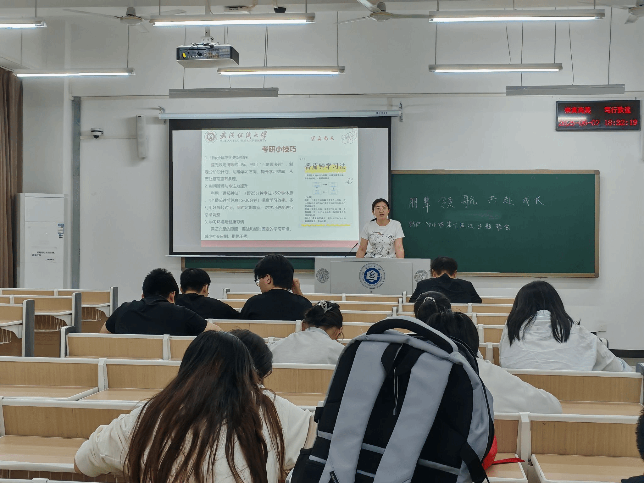 会上,国励获得者轻化12102班张英姿为大三员工分享了自身大学期间参与社会实践、学术科研的经历,并结合自身备考经历,从院校选择、复习规划、心态调整、复试技巧等方面展开讲解。她鼓励大家要珍惜在校生活的学习时光,趁早明确目标、做好规划,努力拼搏,成为自己想成为的人。