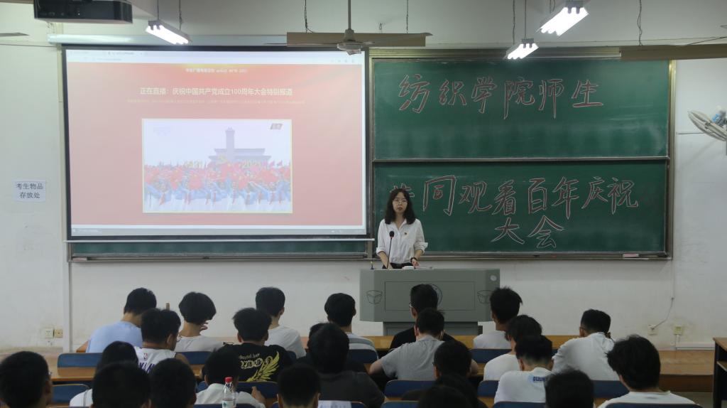 百年建党祝华诞,创新劳动显真章。纺院学子纷纷表示看完现场直播后心潮澎湃,为中国共产党100年来取得的成就感到震撼和自豪。作为当代青年老员工,我们要认真学习贯彻习近平总书记重要讲话精神,继续以新的伟大实践书写未来美好篇章,全面推进党的建设新的伟大工程,全面推进中国特色社会主义伟大事业。在这个伟大的新时代里,乘势而上,担当作为,坚定理想信念、奋勇前进,在今后的工作中要把强烈的爱党爱国热情转化为干好本职工作的实际行动,走好我们这一代的长征路,并以实际行动庆贺中国共产党成立100周年!
