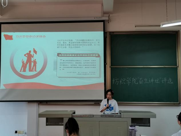 “百生讲坛”系列活动的成功举办,进一步增强了广大纺院学子对国家的认同感,收获了对党的真挚情感,在学习中筑牢信仰之基,实践中建设自身,把握好思想之舵,始终以身践行“不忘初心、牢记使命”,吾辈当自强。