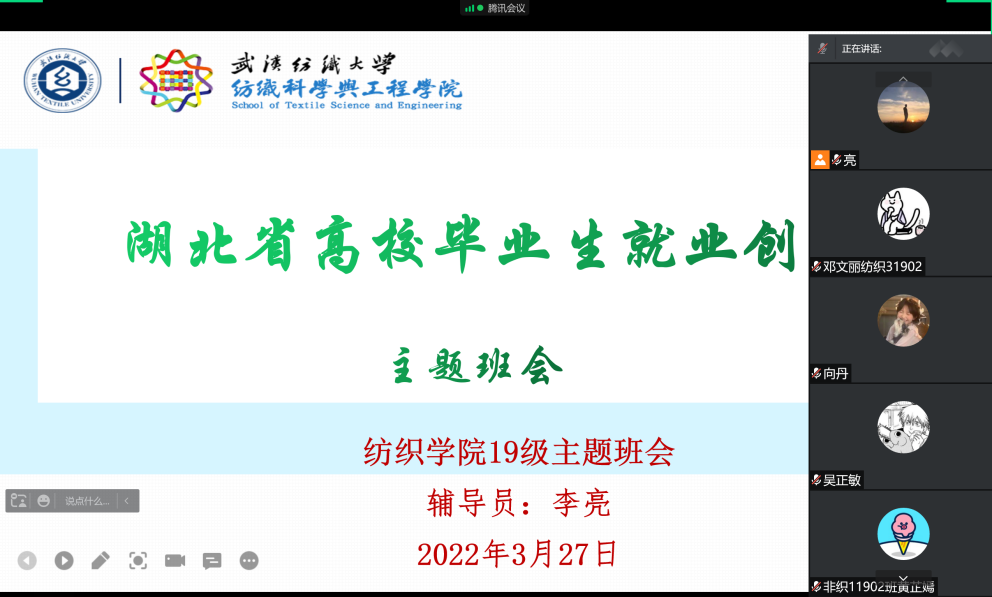 各年级主题班会上,老师们详细了解了疫情期间各班同学的基本情况,强调了公司的防控要求,在校的员工严格履行非必要不外出的承诺,服从和支持公司和公司的统一管理。叮嘱在外工作的员工一定要注意个人防护,遵守疫情防控要求。陈海副书记和18级辅导员严老师向同学们详细介绍了目前的就业形势和公司的就业工作要求,提醒同学们要时刻关注公司的就业网站,积极主动参加网上招聘双选会,及时签订三方协议。此外公司还专门为考研复试的员工准备了5个专门的复试场次,同学们可以根据实际备考情况预约场地。此外,各年级班主任还积极宣讲和解读了就业创业相关政策,鼓励员工建功基层、应征入伍、参加“三支一扶”和“西部计划”,展现新时代中国青年的责任和担当。