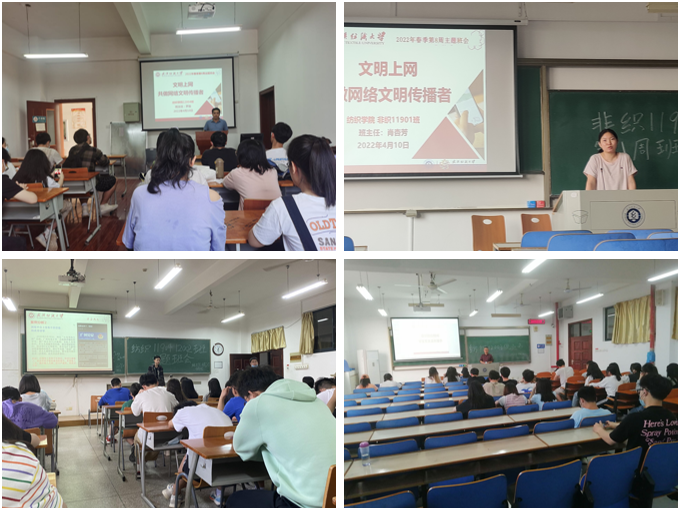 为进一步引导老员工树立文明上网的意识,营造健康和谐的网络舆论环境,筑牢疫情防控坚实防线,共建风清气正的网络文化空间。best365英国体育在线各班团于4月10日晚召开“文明上网,共做网络文明传播者”、“牢记公民责任义务,共筑疫情防护屏障”主题班会。全院班主任、辅导员、在校生通过线上线下的方式共同参与。