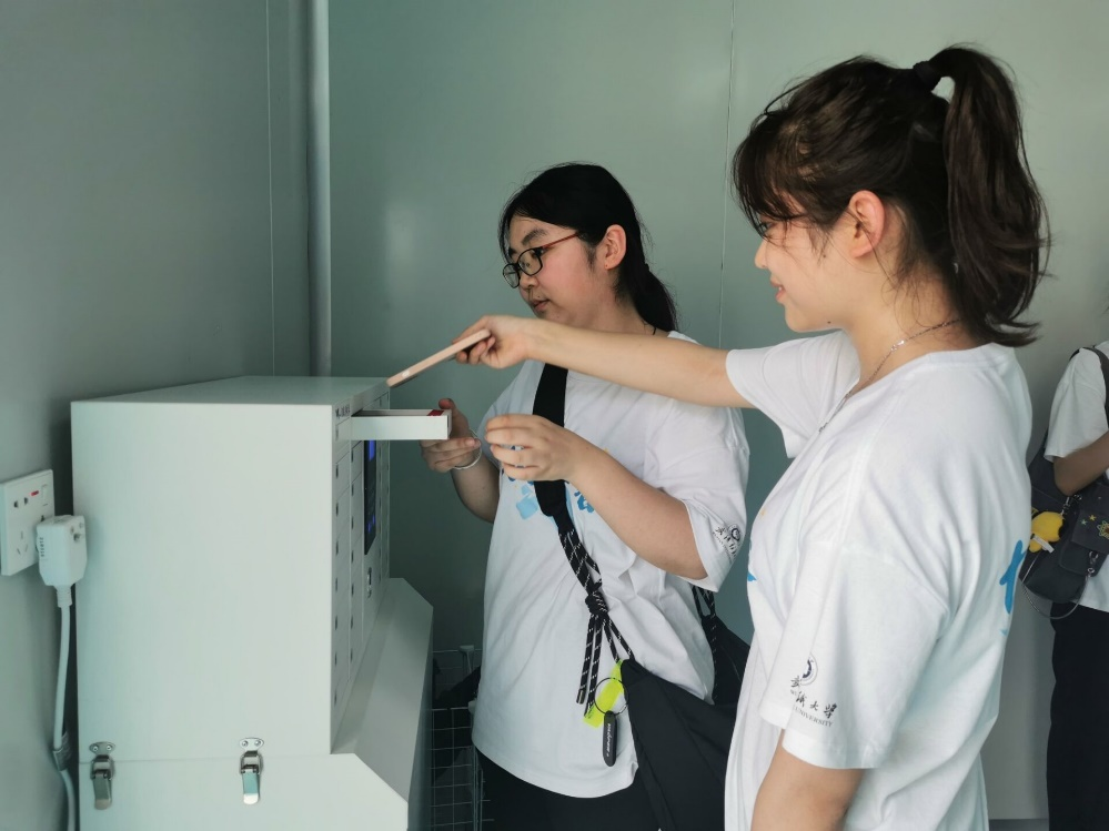 (图为实践团成员进入车间前为确保无菌,存放个人物品)