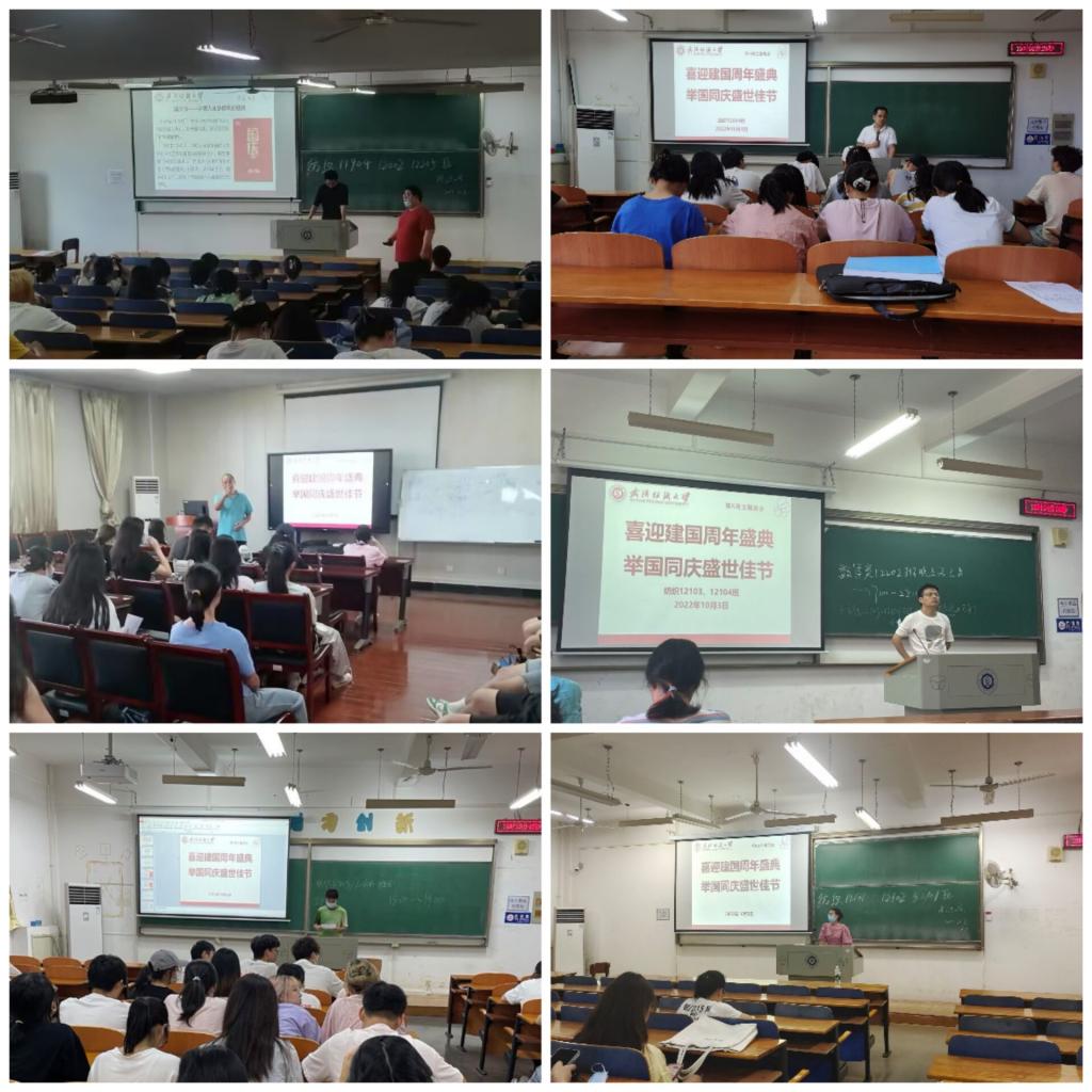 会议伊始,各班组织同学们集体观看爱国宣传片,为同学们介绍国家的发展与进步,21级辅导员张竣青老师及各班班主任教育同学要倍加珍惜来之不易的幸福生活,提高民族自尊心和自豪感,进一步发扬贡献力量、建设祖国的良好风尚。22级辅导员王然老师及各班班主任呼吁同学们要热爱祖国、热爱家园,珍惜当下幸福生活,珍视大学美好时光,勇于克服困难,勤奋读书,将来成为具有高尚思想品质和良好道德修养的人,同时,也要做一个有知识、有文化的,合格的社会主义事业建设者,为家乡建设贡献自己的力量。20级辅导员吴童玲老师及各班班主任提出同学们要把对祖国的热爱落实到日常生活中,落实到具体活动中,从热爱集体、关心同学、尊敬老师做起,只有心中有集体、有他人,才会有国家。