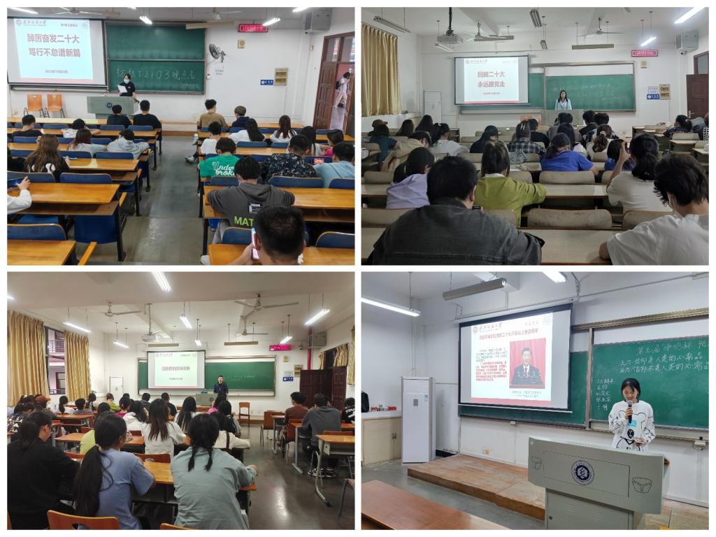 首先,辅导员、班主任老师以观看视频、PPT等方式带领同学们学习习近平同志代表第十九届中央委员会向大会作出的报告内涵及习近平总书记对青年人的寄语,同时引导同学们将自己的未来同国家未来联系在一起。然后辅导员、班主任老师引导员工认识新冠毒株BA.5.2,以及“密接”、“次密接”和“一般接触者”概念,强化疫情防控意识。并组织员工登录国家智慧教育公共服务平台,组织员工学习健康管理、疫情防控和个人防护知识技能,提高员工健康素养,增强疫情防控能力,筑牢校园防疫屏障。
