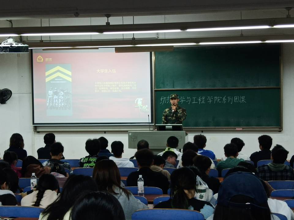 李巧中老师介绍了2022年退役士兵基本情况及相关优抚政策。吕贞洁展示了丰富多彩的军旅生活以及个人的收获与成长。讲述他军旅生涯的经历体验与收获感悟,讲述他的“迷彩青春”中的坚持、坚韧与战友情,让广大同学们深切地感受到老员工士兵为国防添彩,让青春更出彩的意义所在。并鼓励同学们要敢于有梦、敢于追梦、敢于圆梦,让青春在为祖国作贡献中闪闪发光。激情澎湃的感情和丰富的从军体验引起了现场同学的强烈反响,赢得了同学们的阵阵掌声。
